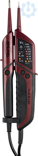 Testboy Profi III LED (10 + 1 Aktion). Aktionspaket mit 11 x Profi III LED (Art.-Nr. 61302000, EAN 4028532200282). Zweipoliger Spannungsprüfer mit FI-/RCD-Test. Anzeige von Wechselspannung von 6 V bis 1000 V. Anzeige von Gleichspannung von 6 V bis 1400 V. Hinweis auf berührungsgefährliche Spannung bei Nutzung ohne Batterie. Polaritätsanzeige bei Gleichspannung. automatische Prüfbereichswahl. einpolige Phasensuche (> 100 V AC LED `L`). zweipolige Drehfeldprüfung (> 180 V AC `L` und `R`). Prüfungen ohne Fingerkontakt. Durchgangsprüfung von 0 - 200 kOhm optisch/akustisch. Diodentest. FI/RCD-Prüftest (30mA) mittels zwei Tastern. Farbtreue Prüfstellenbeleuchtung durch weiße LED. einfach bedienbares Klicksystem zum Verstellen der Steckdosenmaße. Spezialspitzen auch passend für WAGO-Klemmen. abschraubbare 4mm Prüfspitzenadapter und GS 38 Prüfaufsätze. optimale Einhandbedienung. optisches, akustisches und vibrierendes Signal bei lebensbedrohlicher Spannung. unverlierbarer Prüfspitzenschutz Betriebsstrom I(N) <=3,5mA.