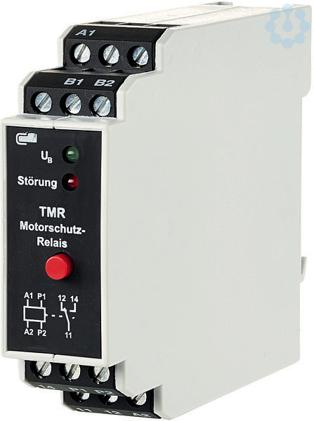 Das Thermistorrelais wird als Schutzrelais für Motoren gegen thermische Überlastung (unzulässige Erwärmung) eingesetzt. Diese Erwärmung kann durch mechanische Überlastung an der Welle oder beim Betrieb des Motors mit unzulässigen Spannungen auftreten. Als Sensor wird ein Kaltleiter (PTC) verwendet, der möglichst an dem Teil des Motors platziert wird, der sich bei Überlastung am stärksten erwärmt (z. B. in Motorwicklung integriert). Das Gerät ist auch bei Motoren einsetzbar, bei denen ein Thermoschalter integriert ist. Integrierter Fehlerspeicher mit frontseitiger Reset-Taste, oder Anschluss eines externen Reset-Tasters (Klemmen B1 - B2)., Varianten:, 230 V AC oder 24 V AC/DC, 1 Wechsler oder 2 Wechsler