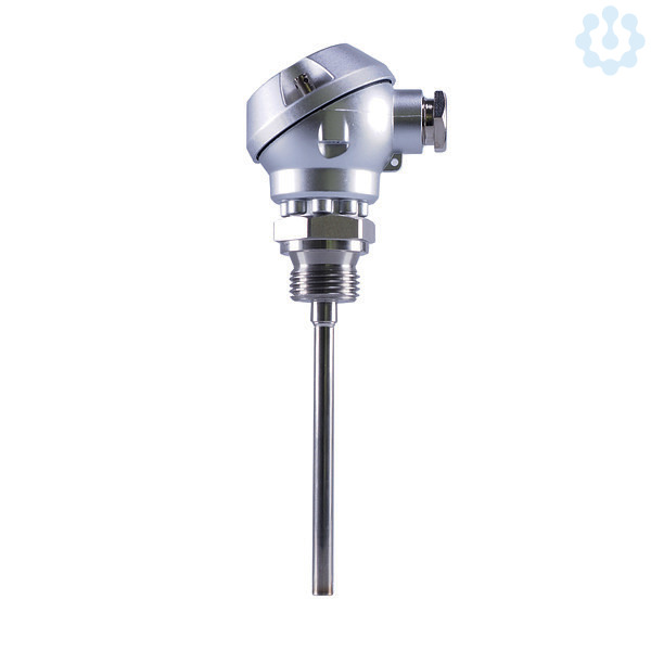 Das einschraubbare Thermoelement eignet sich mit Hilfe des Seebeck-Effekts zur Temperaturmessung in flüssigen und gasförmigen Medien. Die bewährte Einbauform gewährleistet eine zuverlässige Dichtheit bei Unter- als auch bei Überdruck. Das durchgehende Schutzrohr und der Prozessanschluss sind aus Edelstahl gefertigt und schützen den Messeinsatz gegen chemische Einflüsse und mechanische Beschädigungen. Das Thermoelement kann deshalb hervorragend beispielsweise im Heizungs-, Ofen- und Apparatebau, sowie in der Prozesstechnik eingesetzt werden. Das Einfach-Thermoelement 1x Fe-CuNi L nach DIN 43710 ist für Temperaturen von -200 bis +600 °C ausgelegt. Der Anschlusskopf in Ausführung Form J ist aus Alu-Druckguss gefertigt. Dieser verfügt über eine Kabelverschraubung M16 x 1,5 und verträgt Umgebungstemperaturen von -40 bis +100 °C. Das Schutzrohr hat einen Durchmesser von 6,0 mm und die Einbaulänge beträgt 100 mm. Eine Verschraubung mit Gewinde G 1/2 Zoll dient als Prozessanschluss. Das Thermoelement besitzt die Schu