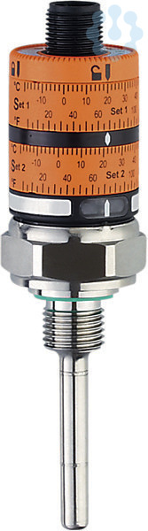 (nach DIN EN 60751, Klasse A). PNP. Schaltsignal. Einbaulänge EL 50 mm. Messbereich -25...140 °C / -13...284 °F. Druckfestigkeit 400 bar. G 1/4. M12 Steckverbindung