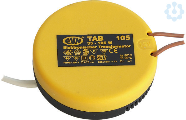 Der elektronische Halogen-Transformator lässt sich auf Grund der kleinen Abmessungen problmelos ueber den Lochauschnitt, ab 71mm Durchmesser, der zu versorgenden Leuchte in die Decke einbringen. Durch die flache Bauweise ist der Einsatz bereits bei Unterkonstruktionen ab 24mm möglich. Technische Daten: ta: max. 50°.C, tc: 90°.C, Toleranz Ausgangsspannung: +6/-10.