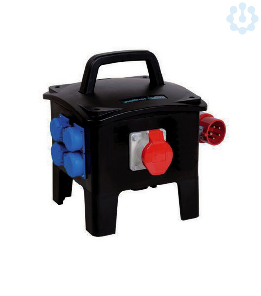 Abgänge/ Absicherung: 1 Fehlerstromschutzschalter (RCD) 4P 40A/30mA -A- 1 CEE-Anbaudose gerade 16A 5P 400V 6h 4 Schutzkontaktsteckdosen