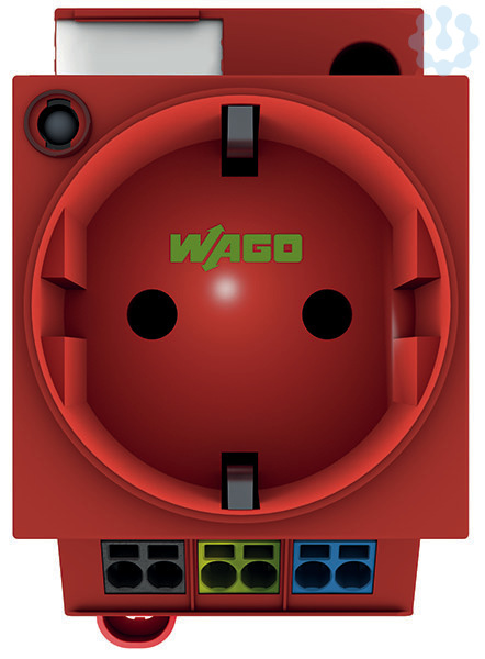 Schaltschrank-Steckdose. zur Tragschienen- und Schraubmontage. für Stecker Typ F, CEE 7/4 (SCHUKO®). gängig in DE, NL, AT. mit LED-Statusanzeige. mit Push-in CAGE CLAMP®-Doppelanschluss. rot