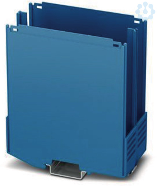 Tragschienengehäuse, Gehäuseunterteil mit Metallfußriegel, Etage 1: mit Lüftungsschlitzen, Breite: 50,1 mm, Höhe: 100 mm, Tiefe: 108,35 mm, Farbe: blau (5015), Querverbindung: Tragschienen-Busverbinder (optional), Polzahl Querverbinder: 8