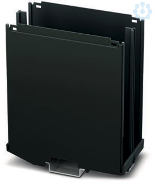 Tragschienengehäuse, Gehäuseunterteil mit Metallfußriegel, Breite: 50,1 mm, Höhe: 100 mm, Tiefe: 108,35 mm, Farbe: schwarz (9005), Querverbindung: Tragschienen-Busverbinder (optional), Polzahl Querverbinder: 8