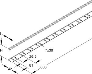 Trennsteg, gekantet, mit Systemlochung im Bodenflansch und zusätzlichem Umbug zum Schutz der Kabel beim Kabelzug, für begehbare Kabelrinnen, zur stufenlosen Einteilung der Rinnenbreite und zur Trennung von Kabeln und Leitungen mit unterschiedlichen Spannungen und Funktionen, einschließlich anteilmäßigen Befestigungszubehör aus Edelstahl, Werkstoff Nr. 1.4301. Mindestanzahl an Trennstegen zur Unterstützung des begehbaren Deckels: Deckelbreite 100 mm = 0 Stück Deckelbreite 200 mm = 0 Stück Deckelbreite 300 mm = 1 Stück bei einer max. Fachgröße von 200 mm Deckelbreite 400 mm = 1 Stück bei einer max. Fachgröße von 200 mm Deckelbreite 500 mm = 2 Stück bei einer max. Fachgröße von 200 mm Deckelbreite 600 mm = 2 Stück bei einer max. Fachgröße von 200 mm Der Potentialausgleich erfolgt durch Verschrauben mit der Kabelrinne. Verwendbar für : begehbare Kabelrinnen Abmessungen (ca. Maße) H : 98 mm Materialstärke t : 2 mm Lieferlänge L : 3000 mm Werkstoff : Aluminium, blank