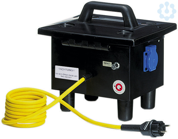auf der Primaerseite Abmessungen: H x B x T = 275 x 280 x 230 mmSchutzart: IP 54Gewicht: ca. 10 kg Eigenschaften:- Gehaeuse aus schlagfestem Vollgummi mit hoher mechanischer Festigkeit- bestaendig gegen Saeuren und Basen- sehr gute Wetter-, UV- und Ozonbestaendigkeit- hohes elektrisches Isolationsvermoegen- Steckdosen und andre Komponenten einzeln auswechselbar und VDE geprueft- Einhaltung aller gueltigen elektrotechnischen Sicherheitsvorschriften der VDE