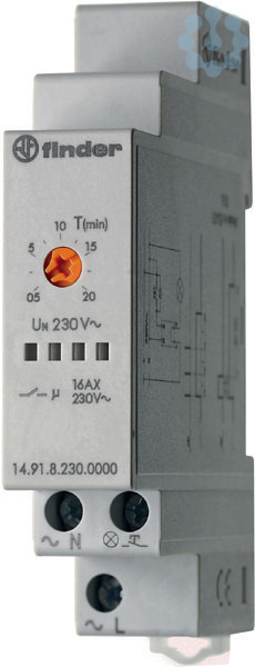 Treppenhaus-Lichtautomat (Funktion Einschaltwischer), retriggerbar, mit Nulldurchgangsschaltung, für DIN-Schiene, 17,5 mm breit, 1 Schließer für 16 A / 250 V AC, Kontaktmaterial AgSnO², Zeitbereich 0,5 bis 20 Min. geeignet für N-Schaltung, der Fußpunkt des Tasters und der L-Anschluss der Last liegen auf Punkt 3. Lampenlasten: Glüh- und Halogenlampen 3000 W, Energiesparlampen 600 W, LED (230 V AC) 600 W, NV-Halogenlampen oder LED mit EVG 600 W, NV-Halogenlampen oder LED mit KVG 1500 W, Leuchtstofflampen mit EVG 1500 W, Leuchtstofflampen mit KVG 1000 W, Anschlussspannung: 230 V AC Alle Anschlüsse auf der unteren Seite. Zur Nachrüstung bestehender Anlagen und als Ersatz. Die Taster müssen zum Schalten der Lampenlast geeignet sein