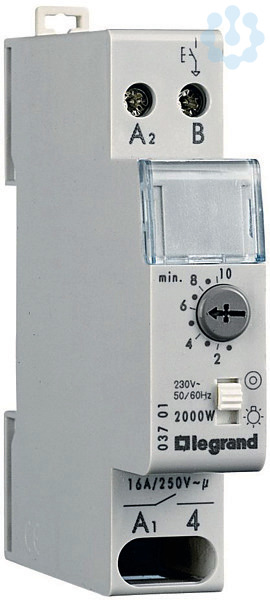 Legrand RexEMPlus, Treppenlichtzeitschalter, elektronisch, Betriebsspannung 230 V 50/60 Hz, 1 Schließer, extrem leise, Zeitbereich: 0,5 - 10 Min., jederzeit nachschaltbar, automatische 3-/4-Leiteranschlusskennung, Handschalter zum Umschalten von Minutenlicht auf Dauerlicht, Nulldurchgangsschaltung, Glimmlampenstrom max. 25 mA, Schutzklasse IP 20, Befestigung auf Hutprofilschiene EN 60715 durch rastende Schnellbefestigung, mit Beschriftungsfenster, Gerätebreite: 1 Teilungseinheit a 17,5 mm.