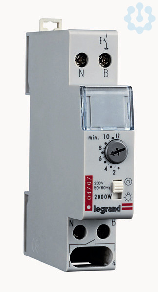 Legrand Rex800Plus, Treppenlichtzeitschalter, elektronisch, Betriebsspannung 230 V 50/60 Hz, 1 Schließer, extrem leise, Zeitbereich: 0,5 - 12 Min., variable Anschlußmöglichekeit, jederzeit nachschaltbar, mit aktiver Vorwarnfunktion (an seitlichem Einstellschalter abschaltbar), automatische 3-/4-Leiteranschlusskennung, Handschalter zum Umschalten von Minutenlicht auf Dauerlicht, Nulldurchgangsschaltung, Glimmlampenstrom max. 50 mA, Schutzklasse IP 20, Befestigung auf Hutprofilschiene EN 60715 durch rastende Schnellbefestigung, mit Beschriftungsfenster, Gerätebreite: 1 Teilungseinheit a 17,5 mm.
