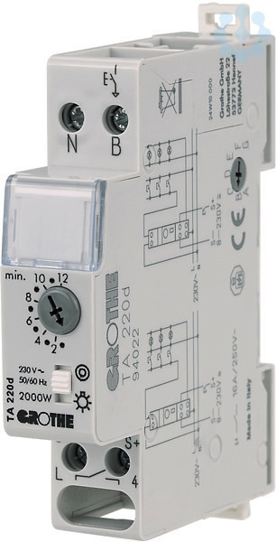 Treppenlicht-Zeitschalter, 230 VAC / 8-230V AC-DC, Ausschalt-Vorwarnung, 12 min., 20 x 97 x 84 mm