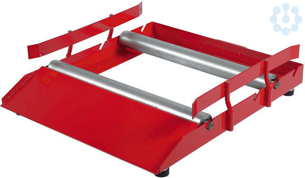 Kabeltrommel-Abroller Trommelfix , extrem robustes Kabeltrommel-Abrollgerät aus pulverbeschichtetem Stahlblech, mit Tragegriff und vier höhenverstellbaren, rutschfesten Gummifüßen, flache Aufrollrampe, mit zwei Tragwalzen, seitliche Trommelführungen, Trommelfix 200, Tragkraft bis 200kg, max. Trommeldurchmesser 700mm, max. Trommelbreite 530mm, Tragwalzenabstand kann durch einfaches Umhängen der Walzen beliebig variiert werden (200, 300 und 400mm), Gewicht 15, 7kg