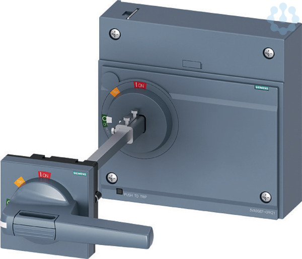 TUERKUPPLUNGSDREHANTRIEB STANDARD IEC IP65 MIT TUERVERRIEGELUNG ZUBEHOER FUER: 3VA15/25 1000 Manuelle Antriebe für Kompaktleistungsschalter 3VA. Für eine rundum komfortable Bedienung des Kompaktleistungsschalter 3VA - Frontantrieb, Türkupplungs- oder Seitenwanddrehantrieb. Diese Zubehörkomponenten zeichnen sich vor allem aus durch: 1. Als Front-, Tür und Seitenwanddrehantrieb verfügbar. 2. Handhaben als Varianten Standard mit und ohne Beleuchtungskit und NOT-HALT mit und ohne Beleuchtungskit verfügbar. 3. Optionales Beleuchtungskit für optimale Erkennung der Schalterstellung auch bei Starker Verschmutzung. 4. Diverse Abschließ- und Verriegelungsmöglichkeiten. www .de/3VA. Siemens bietet für die sichere, effiziente elektrische Infrastruktur in Gebäuden und Industrie ein durchgängiges Portfolio an Schutz-, Schalt-, Mess- und Überwachungsgeräten, Verteilersysteme sowie Schaltern und Steckdosen.