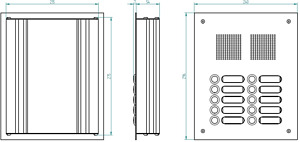 Türstation V2A, Edelstahl gebürstet, zweireihig, Unterputz, inkl. Unterputzkasten, 10 Klingentaster, komplett montiert und verdrahtet, 240 x 296 x 56 mm