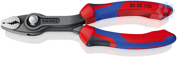 82 02 150 SB KNIPEX TwinGrip Greifen, Anziehen und Lösen von Schrauben mit verschlissenen Köpfen und Antrieben. Einzigartige Kombination: Frontgreif- und Seitengreif-Funktion, durchgestecktes Gelenk, Druckknopfverstellung. Bissiges Frontgreifmaul mit robusten Zähnen und hoher Übersetzung an der Maulspitze. Sehr schlanke Zange: Arbeiten auch in beengten Bauräumen, mit schlanker Drehzone für schnelles Schrauben. Große Front- und Seitengreif-Kapazitäten: für Durchmesser und Schlüsselweiten 3 ? 16 mm. Zuverlässiges, frontales Greifen flacher Werkstücke bis 6 mm durch Dreipunkt-Anlage. Dreifach verstellbares Gleitgelenk mit Druckknopfverstellung für präzises Anpassen der Greifweite. Optimierte Geometrie des Seitengreifmauls: mit Festklemmeffekt für maximalen Grip beim Lösen und Anziehen. Klemmschutz mindert das Risiko gequetschter Finger. Langlebig und belastbar durch robustes, durchgestecktes Zangengelenk. Klein und handlich ? passend auch für filigranere Arbeiten. - Kapazität für Rohre (Durchmesser): Ø 1/8???5/8