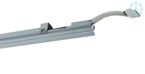 Geräteträger U-LINE-GO-F... für Direkt- und Indirektleuchte. Bündiger Abschluss mit der Tragprofilkante. Aus stranggepresstem Aluminium, silber pulverbeschichtet ähnlich RAL9006 mit RIDI-LED-Modulen mit Längsoptiken aus extrudiertem, UV-beständigem PMMA. RIDI-LED-Linearmodule bestückt mit Mid-Power-LEDs für höchste Effizienz. SELV-konform betriebene LED-Module zur optimalen Wärmeableitung vollflächig an das Aluminiumprofil angepresst. Die Geräteträger lassen sich an beliebiger Stelle in des Tragprofils montieren. Federklammern am Geräteträger für die Befestigung im Tragprofil. Die LED-Module sind bis zu den Geräteträgerenden mit LEDs bestückt wodurch bei kontinuierlicher Montage keine Schatten sichtbar sind. Die Leuchtdichten der unterschiedlichen Längen sind nahezu identisch wodurch die Längen bei Bandanordnung der Leuchten untereinander gemischt werden können. U-LINE-GO-F...ND... mit 5-poliger Durchgangsverdrahtung bei nicht dimmbarer Leuchte. U-LINE-GO-F...DA... mit 7-poliger Durchgangsverdrahtung bei DALI