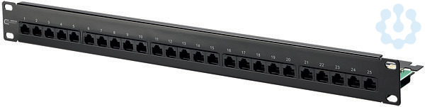 19 Zoll 1HE Cat.3 Patchfeld mit 25 RJ45-Buchsen 8(4), 19 Zoll Modulträger aus Stahlblech, schwarz lackiert, Anschluss der Anschlussleitungen an LSA-PLUS® Schneidklemmen (AWG 22-26), geeignet für Durchmesser von 0,4 bis 0,6 mm, anschließbare Kabeltypen: 5 x 10 DA, 2 x 25 DA, 1 x 50 DA (DA=Doppeladern), Beschaltung nach ISO/IEC 11801/EN 50173-1, die Adernpaare können ohne Aufdrehen der Verseilung bis zur Klemme geführt werden, Zugentlastung mittels Kabelbinder auf rückseitiger Kabelabfangung
