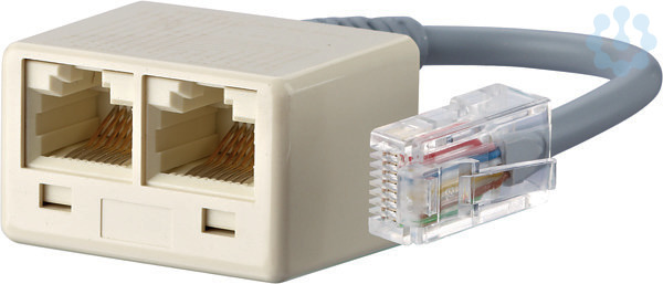 ISDN-Adapter mit integrierten Abschlusswiderstände für einen steckbaren ISDN-S0-Bus-Abschluss, durch Verwendung dieses Adapters mit RJ45-Buchse geht kein Steckplatz verloren, Eingangsseite: RJ45, WE8(8), Ausgangsseite: 2 x RJ45, WE8(8), Abschlusswiderstände: 2 x 100 Ohm, Varianten: Verlängerung 0,1 m, 6,0 m