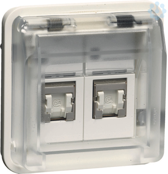 UAE Steckdosen-Einsatz 8/8-polig geschirmt, Kat.6 W.1 polarweiß. UAE Steckdosen AP/UP, 8/8-polig nach Cat.6/Class E nach DIN EN 50173-1 , mit transparentem Klappdeckel, Schneidklemmen, Schirmkontaktierung und Zugentlastung, für Stecker RJ11/RJ12/RJ45, geeignet für PoE+, mit geradem Auslass.