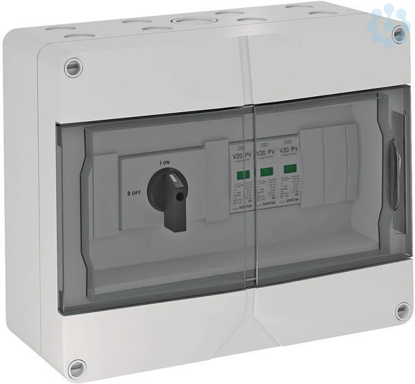 Systemlösung für den Überspannungsschutz von PV-Wechselrichtern mit 2 separaten Eingängen (MPP-Tracker) anschlussfertig im Gehäuse vormontiert. Die Ableiter mit fehlerresistenter Y-Schaltung mit 3 Varistoren zum Einsatz nach VDE 0100-712, steckbar mit dynamischer Abtrennvorrichtung und optischer Funktionsanzeige zeichnen sich durch einen niedrigen DC-Schutzpegel < 4,0 kV aus. Das Gehäuse inklusive Kabelverschraubungsset, mit Schutzart IP66, aus Polycarbonat ist UV-beständig und für den Außeneinsatz geeignet. Pro Schutzgerät sind bereits 2 Klemmstellen bis 6 mm² vorinstalliert. Der einfache, schnelle und sichere Anschluss der DC-Kabel über die Durchgangs-Reihenklemmen ermöglicht einen optimalen Schutz vor dem elektrischen Wechselrichter. Die Schutzgeräte sind gemäß der maximalen Summen-Leerlaufspannung (Uoc) des PV-String auszuwählen. Bei Gefahr von Kondenswasserbildung durch Wind, Eis, Temperatur oder Sonne sind ggf. zusätzliche Maßnahmen erforderlich!