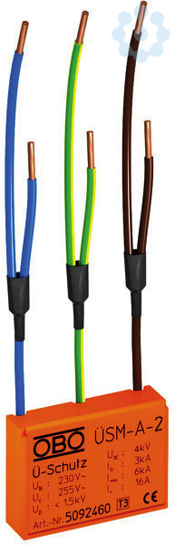 Überspannungsschutzmodul, Feinschutzgerät SPD nach EN 61643-11: Typ 3 für 230V Netze, zum Einsatz an Steckdosen. Geringe Baugröße, für alle Installationssysteme, zum Einsatz in Unterputz-, Unterflur- und Kabelkanal- Systemen. Version -2 mit 2 Litzen zur Durchverdrahtung. Mit akustischer Defektmeldung. 5-Jahre Gewährleistung