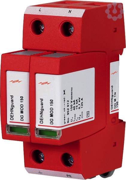 Mehrpoliger Überspannungsableiter DEHNguard M, Typ 2 nach EN 61643-11, bestehend aus Basisteil und gesteckten Schutzmodulen. Hohe Gerätesicherheit durch Ableiterüberwachung mit Thermo-Dynamik-Control. Zum Schutz von Niederspannungs-Verbraucheranlagen vor Überspannungen. Zum Einsatz im Blitz-Schutzzonen-Konzept an den Schnittstellen 0B ? 1 und höher.