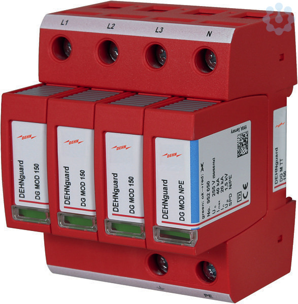Mehrpoliger Überspannungsableiter DEHNguard M, Typ 2 nach EN 61643-11, bestehend aus Basisteil und gesteckten Schutzmodulen. Hohe Gerätesicherheit durch Ableiterüberwachung mit Thermo-Dynamik-Control. Zum Schutz von Niederspannungs-Verbraucheranlagen vor Überspannungen. Zum Einsatz im Blitz-Schutzzonen-Konzept an den Schnittstellen 0B ? 1 und höher.