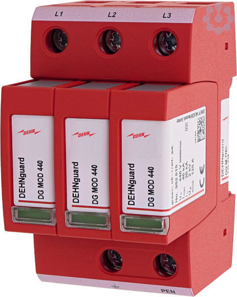 Mehrpoliger Überspannungsableiter DEHNguard M, Typ 2 nach EN 61643-11, bestehend aus Basisteil und gesteckten Schutzmodulen. Hohe Gerätesicherheit durch Ableiterüberwachung mit Thermo-Dynamik-Control. Zum Schutz von Niederspannungs-Verbraucheranlagen vor Überspannungen. Zum Einsatz im Blitz-Schutzzonen-Konzept an den Schnittstellen 0B ? 1 und höher.