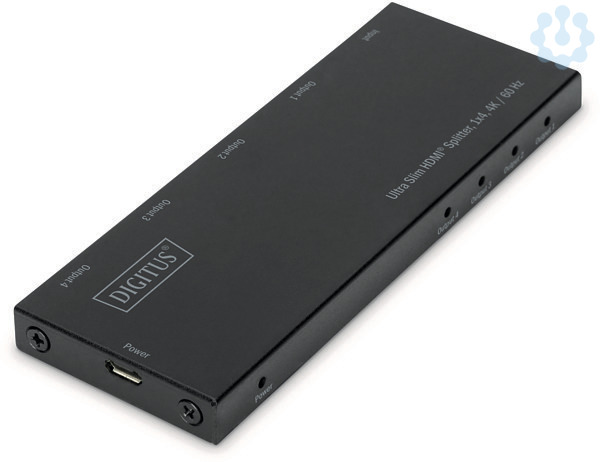Der Hochleistungs-HDMI-Splitter von DIGITUS® verteilt Audio- und Videosignale Ihres HDMI-Gerätes auf bis zu vier Bildschirme, Fernseher oder Beamer in einer Auflösung von UHD 4K /60 Hz. Lästiges Umstecken der Kabel gehört der Vergangenheit an. Zusätzlich wird auch HDR, HDCP 2.2 und 3D unterstützt - ausserdem eine Gesamtbandbreite von 18 Gbps für flüssige Wiedergabe in brillanter Qualität. Der HDMI® Splitter kann über einen vorhandenen USB-Port am TV-Gerät od