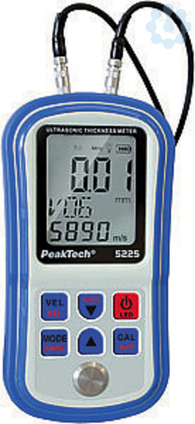 Dieses neu-entwickelte Materialstärkenmessgerät wird Mikroprozessor gesteuert und arbeitet nach dem Ultraschallprinzip.Somit kann das Gerät anhand der Schallgeschwindigkeit die Materialstärken der meisten Schallwellen leitenden Materialien messen, wie z.B. Metall, Glas, Plastik, Keramik und vielem mehr.Für höchste Genauigkeit bietet das Gerät neben der hohen Auflösung von 0.1 mm auch eine Selbstkalibrierfunktion über eine im Gehäuse integrierte 4 mm Metallplatte. Dem Gerät liegen zwei Sensoren für unterschiedliche Materialstärken bei, welche Messungen von 1 mm bis zu 300 mm bei 5 MHz Schallfrequenz zulassen.-Mehrzeiliges LCD-Display mit Hintergrundbeleuchtung-Ultraschall-Messtechnik für Materialstärken-Integrierte Kalibrierfunktion-Geeignet für Materialstärken bis 300 mm-Höchste Messgenauigkeit und Messauflösung-Zwölf Materialvoreinstellungen-Kontaktanzeige für Sensorauflage-Datenspeicher für zwölf Messwerte-Auto-Power Off Funktion