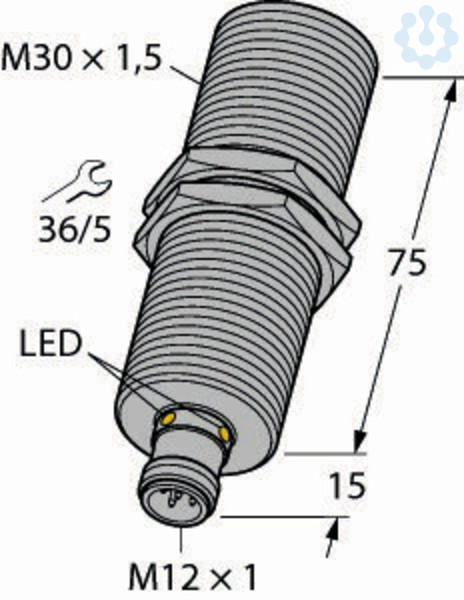 Ultraschallsensor, Reflexionstaster, Glatte Schallwandlerfront, Zylindrische Bauform M30, vergossen, Anschluss über M12x1 Steckverbinder, Messbereich über Teach-In einstellbar, Temperaturkompensation, 2x Schaltausgänge, PNP, Parametrierbar Schließer/Öffner, Blindzone: 30cm, Reichweite: 300cm, Auflösung: 1mm, Öffnungswinkel der Schallkeule: 15°, max. Reichweite: 3000 mm