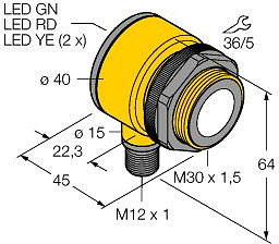 Ultraschallsensor, Reflexionstaster, Blindzone: 20 cm, Reichweite: 200 cm, Kompakte Bauform, Anschluss über Steckverbinder M12X1, 4?polig, Messbereich über Teach?In einstellbar, Analogausgang 0...10 V, Ansprechzeit wählbar, Integrierte Temperaturkompensation, max. Reichweite: 2000 mm