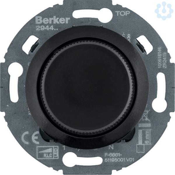 Universal-Drehdimmer mit Zentralstück (R, L, C, LED), Serie 1930/Glas, schw. gl. Universal-Drehdimmer mit Zentralstück mit Nebenstelleneingang für Taster (Schließer) mit Einlächenbedienung, Spannungsprüfung ohne Ausbau möglich, Phasenan-/Phasenabschnitt oder LED-Phasenanschnitt je nach Lastart (selbstlernend). Mit Helligkeitsspeicher, lampenschonender Softanlauf, Inkrementalgeber, kurzschlussfest und überlastsicher (elektronische Sicherung), Schraubklemmen. Hinweis: Keine induktiven und kapazitiven Lasten gemeinsam anschließen.