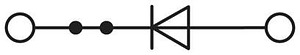 Bauelementreihenklemme, mit integrierter Diode, Der max. Strom wird durch die Diode bestimmt. Eingebaut: Diode 1N 4007, Sperrspannung: 1300 V, Dauergrenzstrom: 0,5 A., Nennspannung: 800 V, Nennstrom: 0,5 A, Anschlussart: Schraubanschluss, Anzahl der Anschlüsse: 2, Querschnitt: 0,14 mm² - 4 mm²,