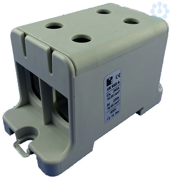 Montage auf 35 mm Tragschiene gem. EN 60715 Für Anwendungen mit Kupfer- und Aluminiumleitungen Klemmkörper aus Alu, verzinnt Al 220A, 16-95 mm? Cu 245A, 16-95mm?