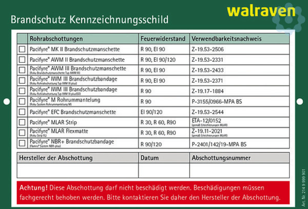 * zur Kennzeichnung aller BIS Pacifyre® Rohrabschottungen