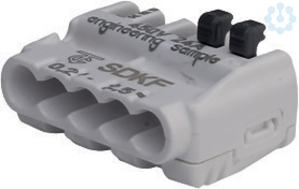 Schraubenlose Verteilerklemme Klemmbereich: ? 0,2 - 2,5 mm2 für starre, mehrdrähtige und fl exible Leiter ? mehrere Drahtquerschnitte in einer Klemme vereinbar ? Sichtfenster ? starre Leiter ohne Öff nen der Lösehebel einsteckbar, hohe Abzugskräfte Farbe: weiß, anthrazit screwless junction box connector for clamping range: ? 0,2 - 2,5 mm2 for solid, rigid stranded and fl exible wires ? a number of wire cross sections can be combined in one terminal ? transparent window ? connection of rigid wires without activating the release leaver, hard to pull out colour: white, anthracite bornier de répartiteur sans vis sections: ? 0,2 - 2,5 mm2 pour conducteurs souples, semi-rigides et rigides ? possibilité de combiner diff érentes sections de fi l sur un seul raccord ? carcasse transparente ? conducteurs rigides enfi chable sans ouvrir le levier couleur: blanc, anthracite