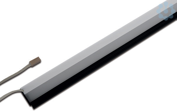 Regalbodenleuchte für 19mm Holzböden, Gehäuse Alu in schwarz eloxiert, Anschlussleitung 2,5m mit LED 24-Stecker, Lichtfarbe warm weiß ca. 3000K
