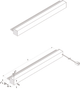 Regalbodenleuchte für 19mm Holzböden, Gehäuse Alu in edelstahloptik eloxiert, Anschlussleitung 2,5m mit LED 24-Stecker, Lichtfarbe warm weiß ca. 3000K