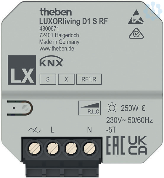 LUXORliving 1-fach Funk-Dimmaktor UP, Sichere Kommunikation über KNX-RF mit Unterstützung von KNX Data Secure, Optimierter Dimmausgang für dimmbare Energiesparlampen, LED, Glüh- und Halogenlampen sowie dimmbare Trafos, Einfache Adaption an verschiedene Leuchtmittel durch automatische Lasterkennung, Einstellbare Dimmkurve für präzises und flackerfreies Dimmen, 2 Binäreingänge für potentialfreie Kontakte wie Taster, Schalter, Temperatursensor (I2), Die Binäreingänge sind ab Werk dem Dimmausgang zugewiesen (Funktionstest vor der Programmierung), Integrierte Temperaturüberwachung für erhöhte Betriebssicherheit z.B. bei Überlast