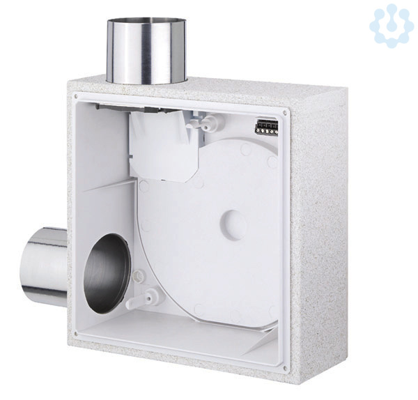 Einsatzgebiet Zweiraumlüftung von Bad und WC. Einbau in Wand, Decke und K 90 qualifizierte Lüftungsschächte. Anschluss von 1 oder 2 Gehäusen pro Etage bis zu 20 Vollgeschossen möglich. Ventilator-Einsatz mit 100 m3/h empfohlen