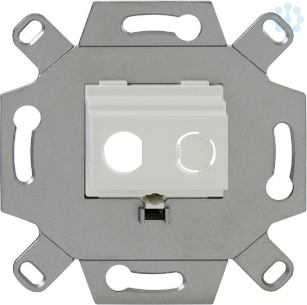 Montageadapter, 2-fach, perlweiß (ähnlich RAL 1013), für 2 F-Buchsen (12 mm), für TAE-Abdeckungen, - Tragadapter aus Zinkdruckguss, - abbrechbarer Tragring für Stegversion, - für F-Buchsen KM-BNC-F oder vergleichbare, Ï max. 12 mm, - metrische Schrauben für Zentralstücke, - passend zu TAE-Designabdeckungen der Schalterindustrie (Berker, Busch-Jaeger, GIRA, Jung, Merten, u.a.)