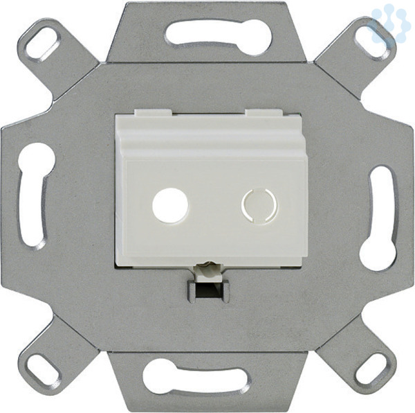 Montageadapter, 2-fach, perlweiß (ähnlich RAL 1013), für Miniklinkenbuchse (3,5 mm), für TAE-Abdeckungen, - Tragadapter aus Zinkdruckguss, - abbrechbarer Tragring für Stegversion, - für Miniklinkenbuchse KM-MK 3,5 mm oder vergleichbare, Ï max. 3,5 mm, - metrische Schrauben für Zentralstücke, - passend zu TAE-Designabdeckungen der Schalterindustrie (Berker, Busch-Jaeger, GIRA, Jung, Merten, u.a.)