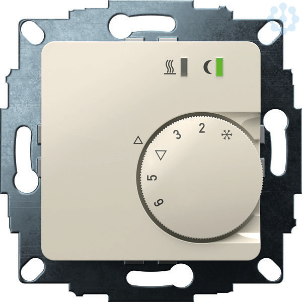 Elektronischer Unterputz-Raumtemperaturregler zur Regelung oder Überwachung von Temperaturen in Wohnräumen, Büros und Hotels. Passend in alle gängigen Schalterprogramme. Cremeweiß glänzend, 50x50 Abdeckung mit Knopf. Geeignet für wassergeführte Heizsysteme. Durch Einsatz eines Triac-Schalters völlig geräuschlos, im Gegensatz zu Relais oder Bimetall. Automatisch umschaltbar durch einen Change-Over-Eingang, daher einsetzbar zum Heizen und Kühlen. Bei Beschalten der Uhren-Klemme wird auf eine um 3,5K geringere Temperatur geregelt und im Kühlbetrieb um 3,5K erhöht. Mit LED-Statusanzeigen. Einstellbare Bereichseinengung im Einstellknopf als Heizkostenbremse. Eine unverlierbare Schraube mit Gewindeeinsatz zur Befestigung des Gehäusedeckels sowie praktische Steckklemmen erleichtert die Montage. Montage in 55er UP-Dose.