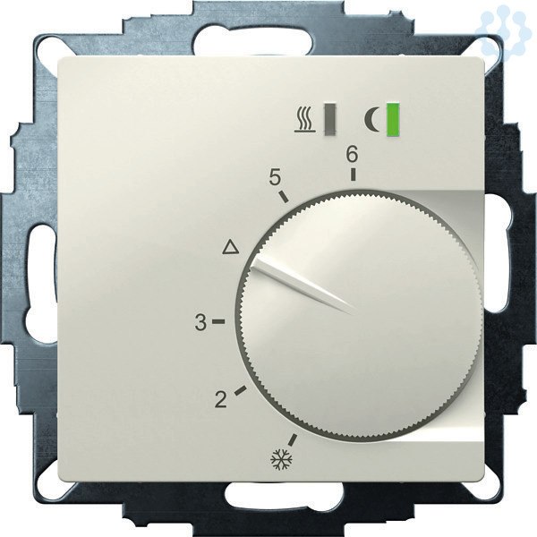 Elektronischer Unterputz-Raumtemperaturregler zur Regelung oder Überwachung von Temperaturen in Wohnräumen, Büros und Hotels. Passend in alle gängigen Schalterprogramme. Polarweiß glänzend, 55x55 Abdeckung mit Knopf. Geeignet für wassergeführte Heizsysteme. Durch Einsatz eines Triac-Schalters völlig geräuschlos, im Gegensatz zu Relais oder Bimetall. Automatisch umschaltbar durch einen Change-Over-Eingang, daher einsetzbar zum Heizen und Kühlen. Bei Beschalten der Uhren-Klemme wird auf eine um 3,5K geringere Temperatur geregelt und im Kühlbetrieb um 3,5K erhöht. Mit LED-Statusanzeigen. Einstellbare Bereichseinengung im Einstellknopf als Heizkostenbremse. Eine unverlierbare Schraube mit Gewindeeinsatz zur Befestigung des Gehäusedeckels sowie praktische Steckklemmen erleichtert die Montage. Montage in 55er UP-Dose.