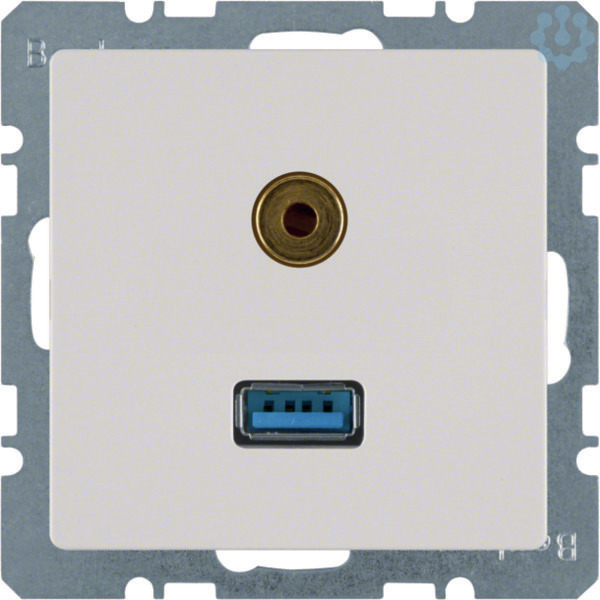 USB/3,5 mm Audio Steckdose Q.1/Q.3 polarweiß, samt. USB / 3,5 mm Audio Steckdose geeignet für den Anschluss mobiler Geräte, wie z.B. Handys oder MP3-Player (Mini Audio) sowie Digitalkameras und Computer-Peripherie (USB 2.0), USB Doppelbuchse (vorder- und rückseitig) Typ A, USB 2.0 fähig, Klinken Doppelbuchse (vorder- und rückseitig) vergoldet 3,5 mm, Stereo, ohne Spreizkrallen.