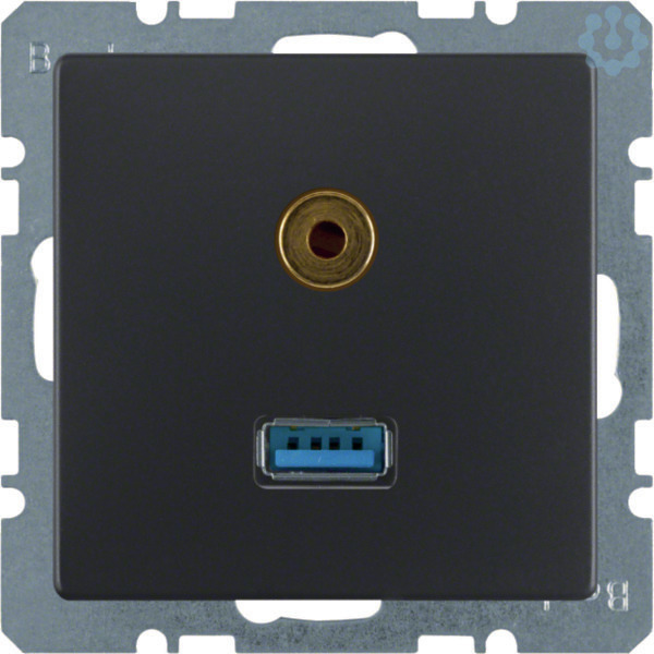 USB/3,5 mm Audio Steckdose Q.1/Q.3 anthrazit, samt. USB / 3,5 mm Audio Steckdose geeignet für den Anschluss mobiler Geräte, wie z.B. Handys oder MP3-Player (Mini Audio) sowie Digitalkameras und Computer-Peripherie (USB 2.0), USB Doppelbuchse (vorder- und rückseitig) Typ A, USB 2.0 fähig, Klinken Doppelbuchse (vorder- und rückseitig) vergoldet 3,5 mm, Stereo, ohne Spreizkrallen.