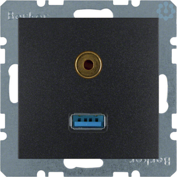 USB/3,5 mm Audio Steckdose B.3/B.7 anthrazit, matt. USB / 3,5 mm Audio Steckdose geeignet für den Anschluss mobiler Geräte, wie z.B. Handys oder MP3-Player (Mini Audio) sowie Digitalkameras und Computer-Peripherie (USB 2.0), USB Doppelbuchse (vorder- und rückseitig) Typ A, USB 2.0 fähig, Klinken Doppelbuchse (vorder- und rückseitig) vergoldet 3,5 mm, Stereo, ohne Spreizkrallen.