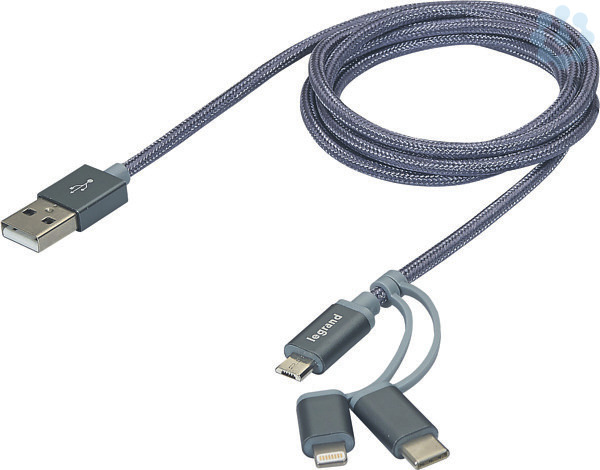 KABEL 3 IN 1 MICRO/USBC/LIGHT, Anbindungen: Apple Lightning, Micro USB, USB Type C, Super fast charging bis 12 W (2.4A 5V), Datenübertragung bis 480 Mbps, Apple Mfi zertifiziert für Lightning Kabel, Länge: 1.2m, Geflochtenes Gewebe, Oberfläche des Kabels ist Anti-Kabelsalat beschichtet