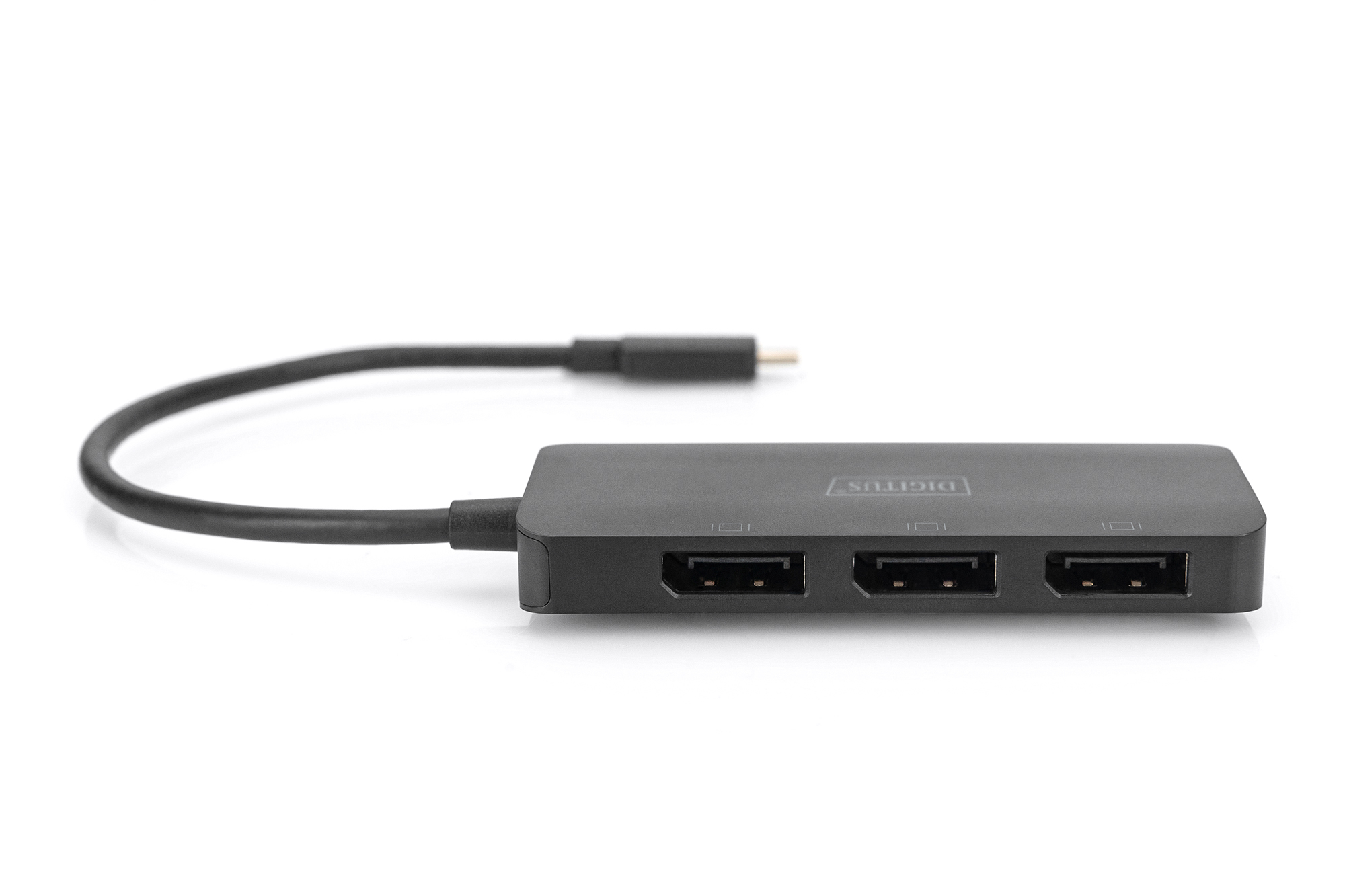 1.2-Funktion), mit der mehrere AV-Signale über ein einziges Kabel transportiert werden können. Dies ermöglicht die Verwendung mehrerer Monitore, die über die MST-Hub-Konfiguration verbunden sind. Die MST Hub kann unterschiedliche Videostreams an die drei angeschlossenen Bildschirme verteilen. Generell werden drei Wiedergabe-Modi unterstützt: Spiegeln (1 Signal auf 3 Displays gespiegelt), Erweitern (3 Signale auf 3 Displays), Verteilen (1 Signal über 3 Displays verteilt).